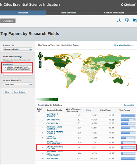 近日,科睿唯安公布了最新ESI排名,我校环境/生态学科进入全球ESI1%。目前学校共有全球ESI1%学科10个,分别是临床医学、工程学、农业科学、植物与动物学、材料科学、化学、药理学与毒理学、生物学与生物化学、环境/生态学、计算机科学。